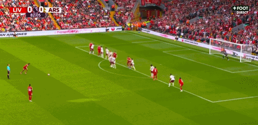 苏比门迪放倒琼斯,送给对手一个定位球,索博斯洛伊离门20米外打出一记无解世界波,越过人墙之后直挂左上角,拉亚鞭长莫及,1-0!
